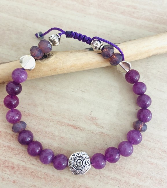 Plongez dans les vibrations apaisantes de l’améthyste avec ce bracelet délicatement monté à la main dans mon atelier.