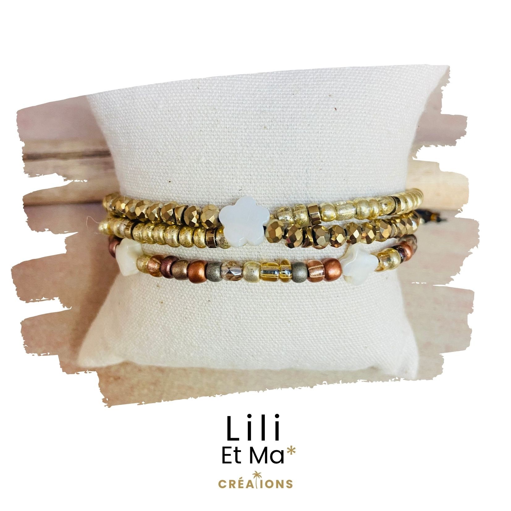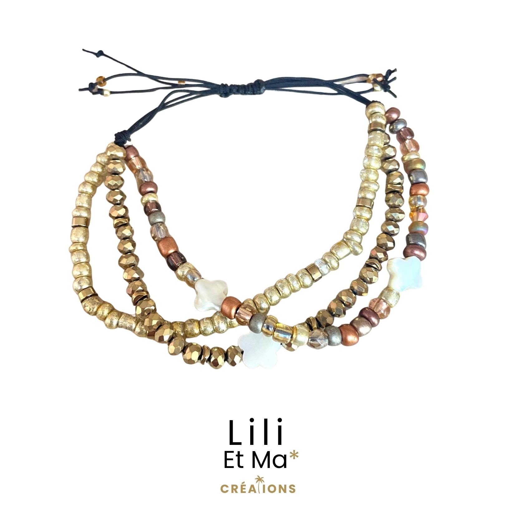 - Matériaux : perles de rocaille en verre, perles fantaisie, perles nacre