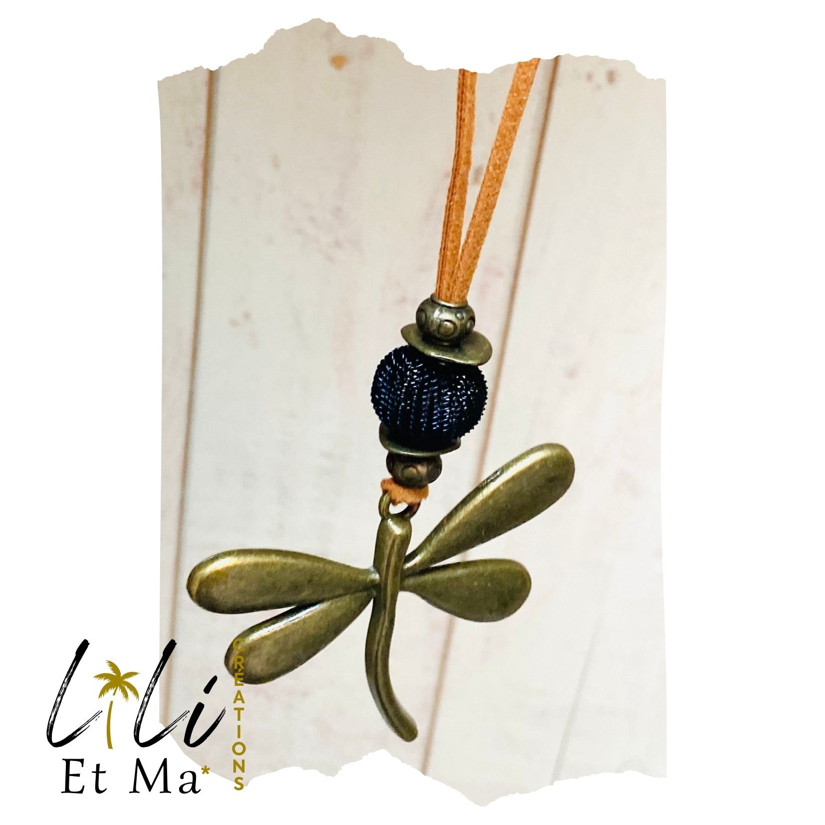 • Pendentif : libellule en métal bronze, finition lisse et mat, hauteur 5 cm - largeur 6 cm