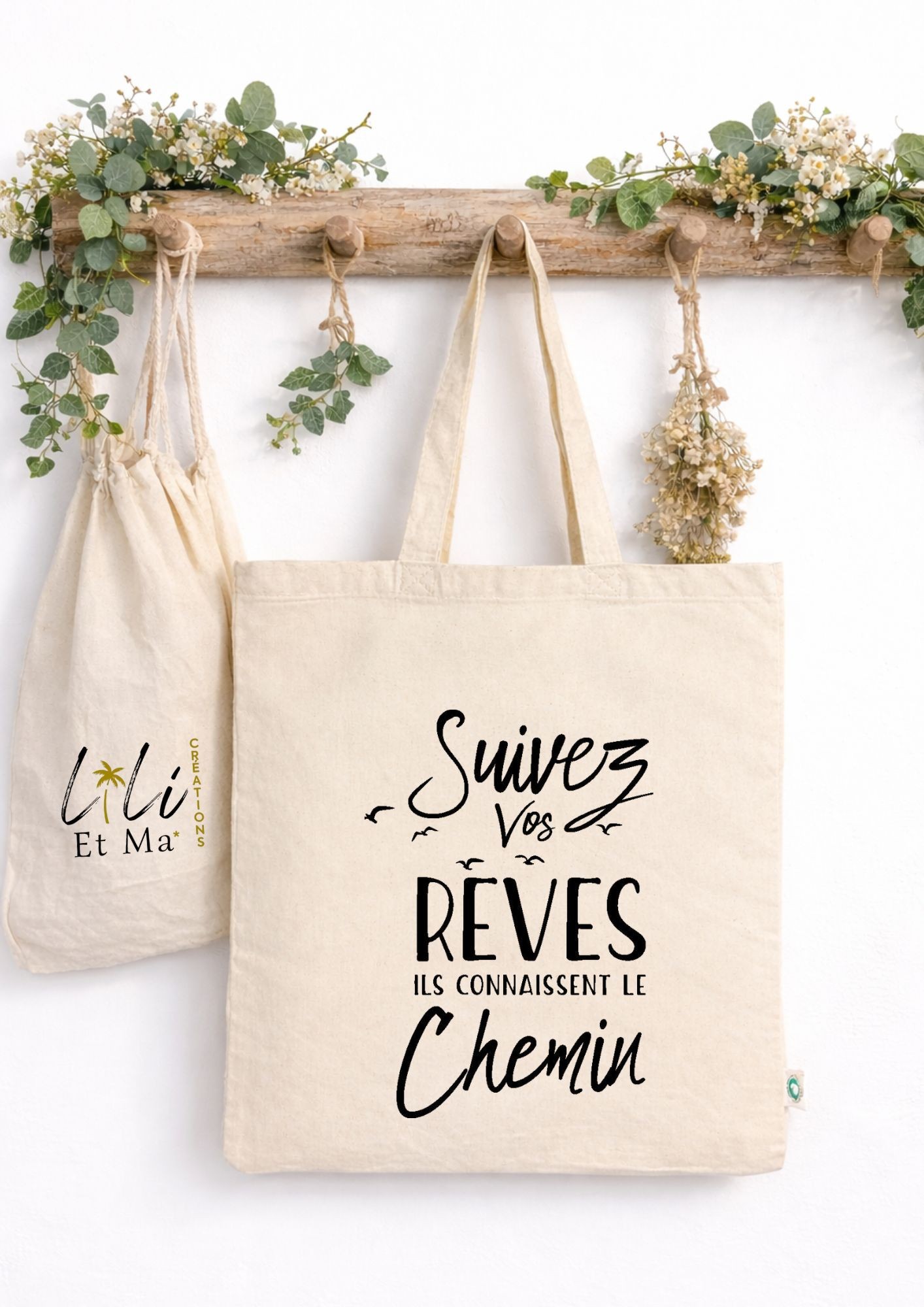 - Sac beige en coton naturel biologique imprimé thermocollé