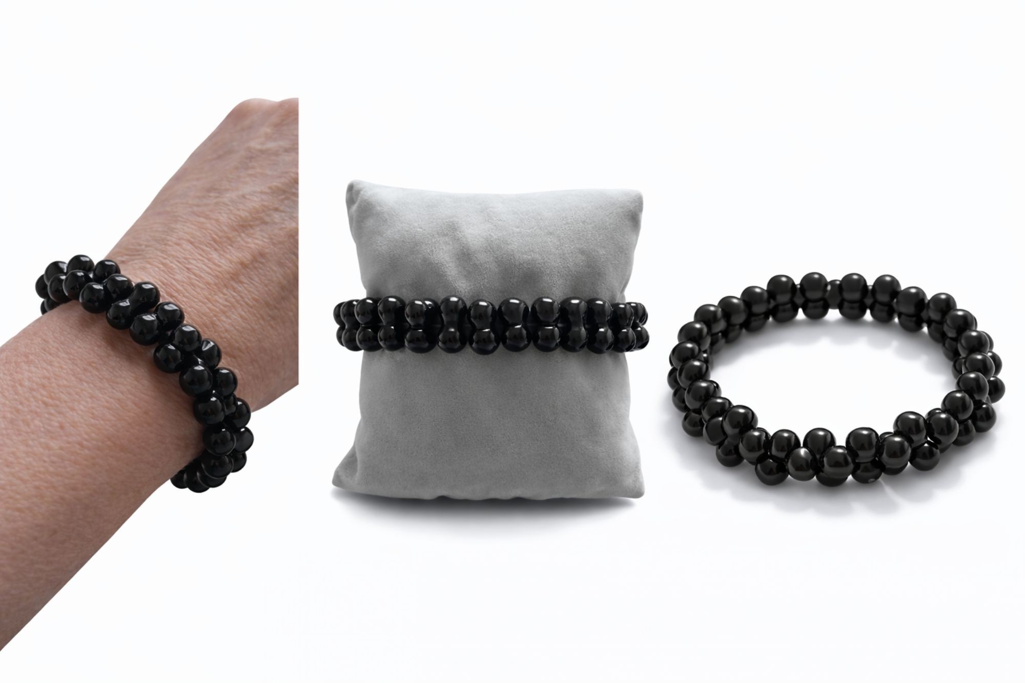 Bracelet artisanal en agate noire – élégance et sobriété