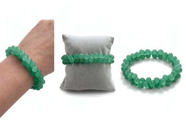 Monté sur fil élastique résistant, le bracelet est souple et confortable à porter au quotidien.
