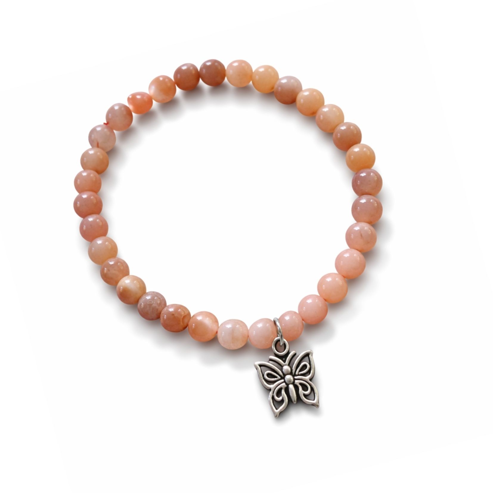 Au centre du bracelet, une breloque papillon argentée ajoute une touche poétique et symbolique.