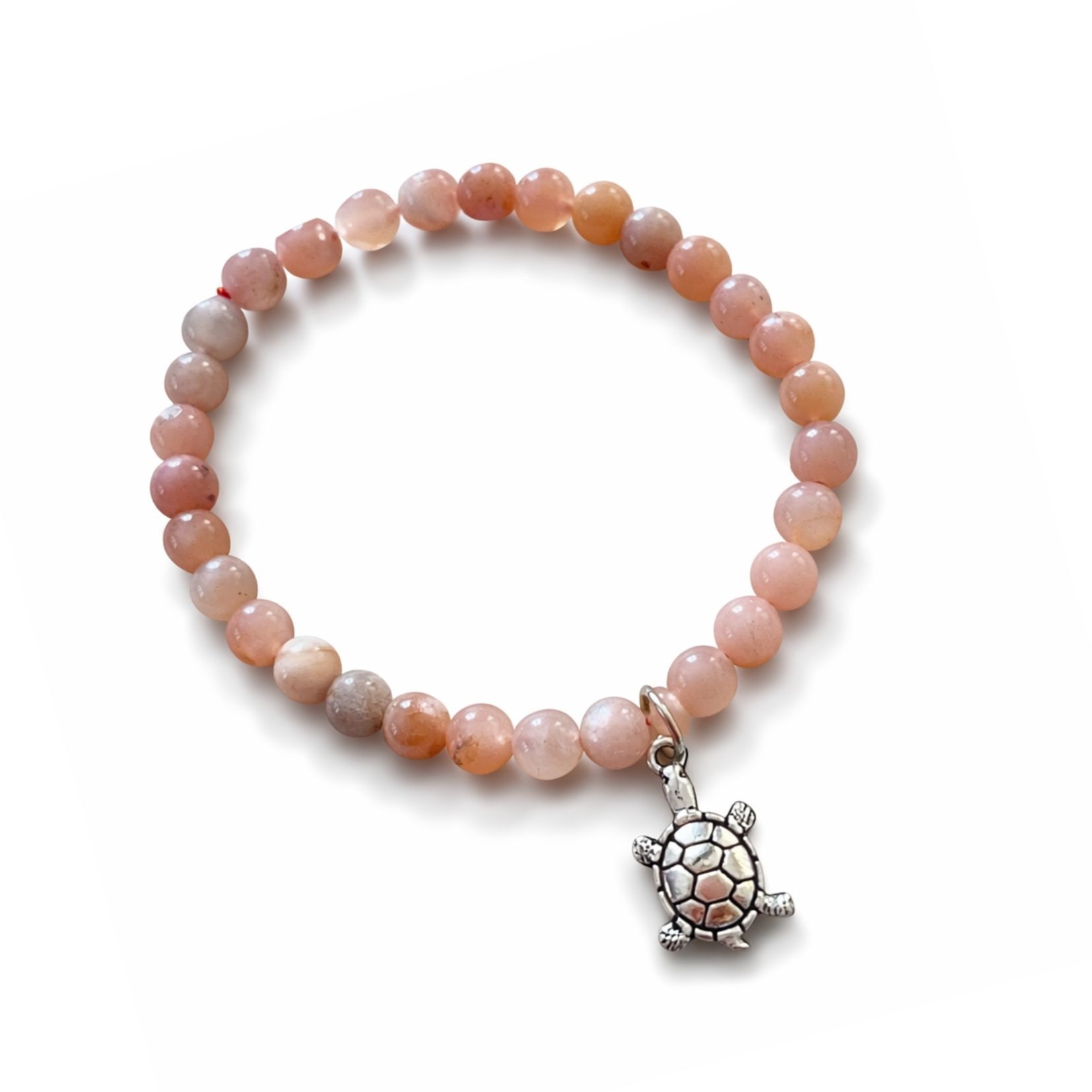 Au centre du bracelet, une breloque tortue argentée ajoute une touche poétique et symbolique.