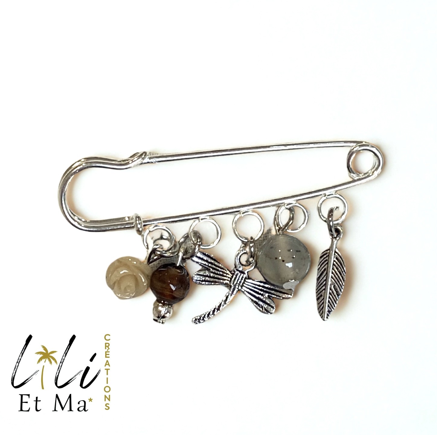 Broche épingle à nourrice libellule argentée – 5 cm