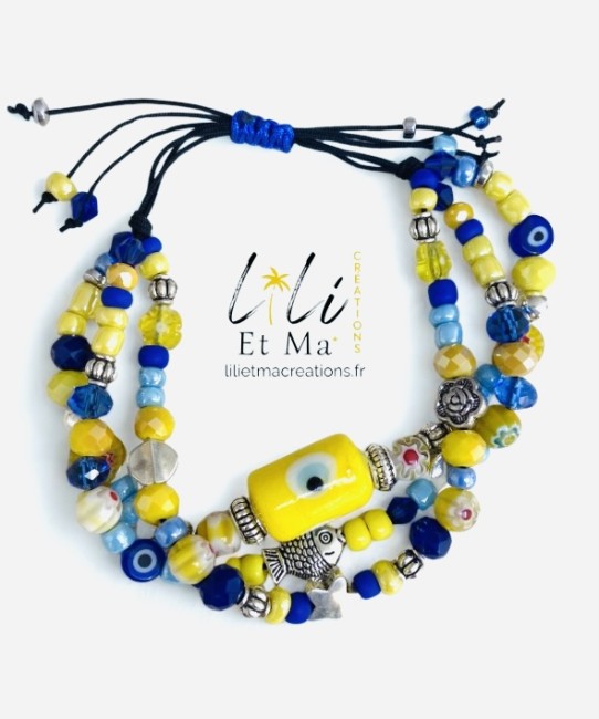 Bracelet 3 rangs jaune et bleu