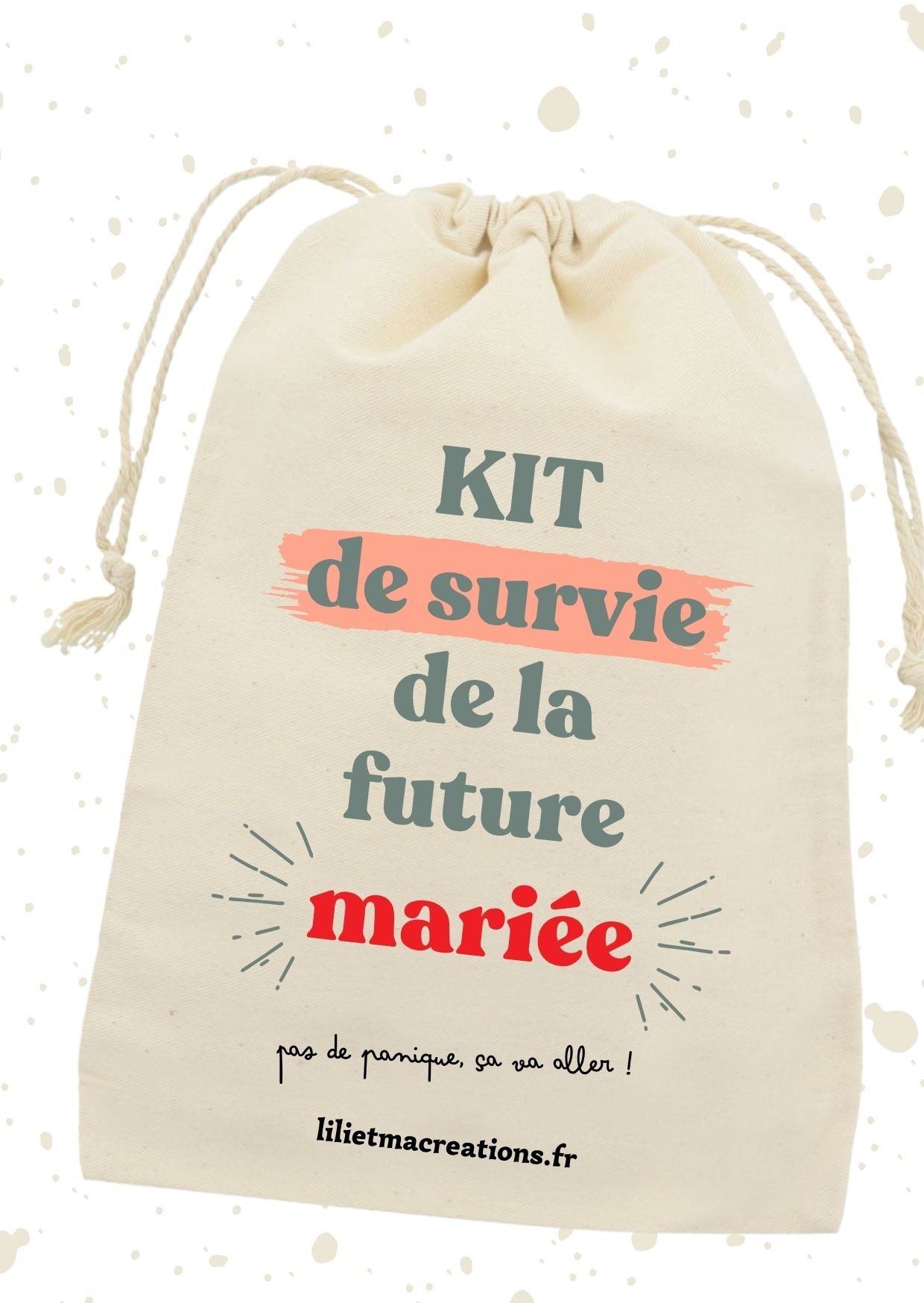 Un pochon en coton biologique recyclé, à la fois pratique, joli et écoresponsable."Kit de survie de la future mariée"