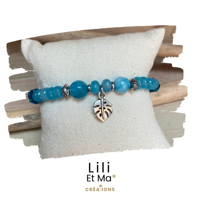 Bracelet agate bleue feuille