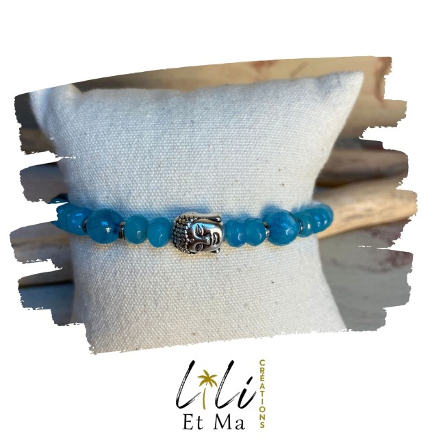 Bracelet agate bleu Bouddha