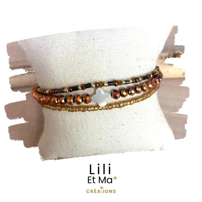 Bracelet 3 rangs cuivré nacre